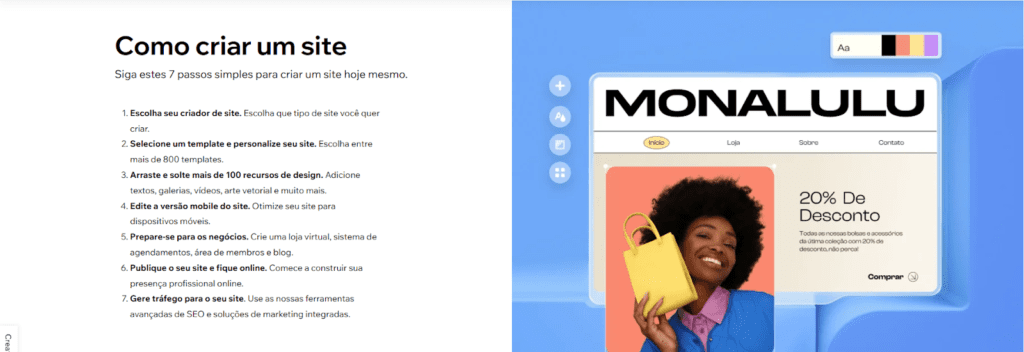 Com recursos e modelos para escolher, o Wix é uma ótima opção para quem deseja criar um site profissional e de alta qualidade de forma fácil e rápida.