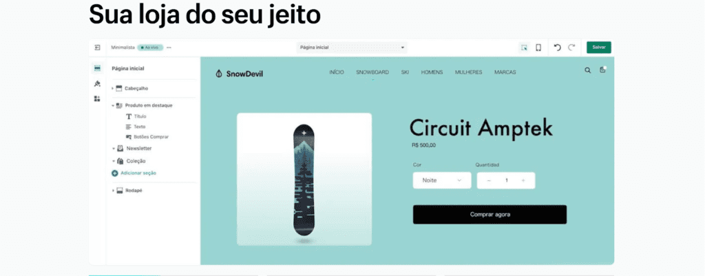 Tirando isso, espere as mesmas funções do Shopify. É possível personalizar um tema, ter um domínio só seu, adicionar produtos e muito mais.